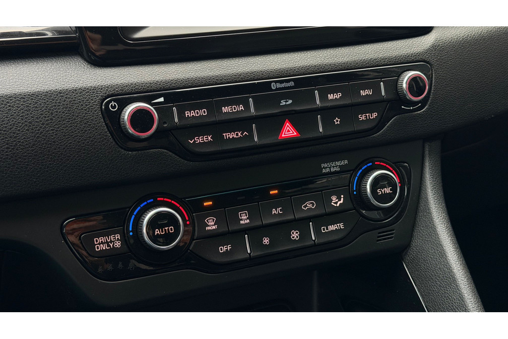 Zoals u mag verwachten van deze Kia Niro is hij uitgerust met een reeks aan actieve veiligheidssystemen. Wat deze auto ook kan, is lezen. Hij 'leest' voor u de verkeersborden tijdens de rit en attendeert u erop door ze op het dashboard te projecteren. Het Lane-keeping systeem registreert permanent of u binnen de lijnen van de rijstrook blijft; dwaalt u onbedoeld af, dan waarschuwt het systeem en corrigeert de koers. In deze Kia vinden we verder een dodehoekdetectie, hill hold functie, autonoom remsysteem en bandenspanningcontrolesysteem.