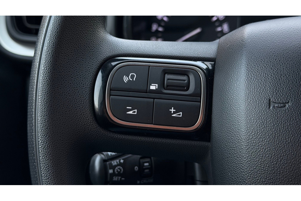 In deze C3 vindt u schakelaars op het stuur om het audiosysteem te bedienen. De sensoren van de achteropkomend verkeer waarschuwing registreren wat er gebeurt in de dode hoeken en achter u. U krijgt meteen een waarschuwing als u een achterligger over het hoofd ziet. Cruise control is aanwezig; prettig voor de lange einden. Het spreekt voor zich dat u in deze auto ook airconditioning aantreft. Deze Citroën is voorzien van centrale deurvergrendeling met afstandsbediening, boordcomputer en verstelbaar stuur.