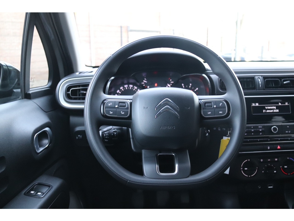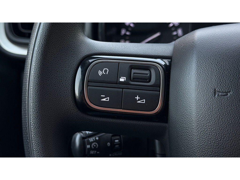 In deze C3 vindt u schakelaars op het stuur om het audiosysteem te bedienen. De sensoren van de achteropkomend verkeer waarschuwing registreren wat er gebeurt in de dode hoeken en achter u. U krijgt meteen een waarschuwing als u een achterligger over het hoofd ziet. Cruise control is aanwezig; prettig voor de lange einden. Het spreekt voor zich dat u in deze auto ook airconditioning aantreft. Deze Citroën is voorzien van centrale deurvergrendeling met afstandsbediening, boordcomputer en verstelbaar stuur.