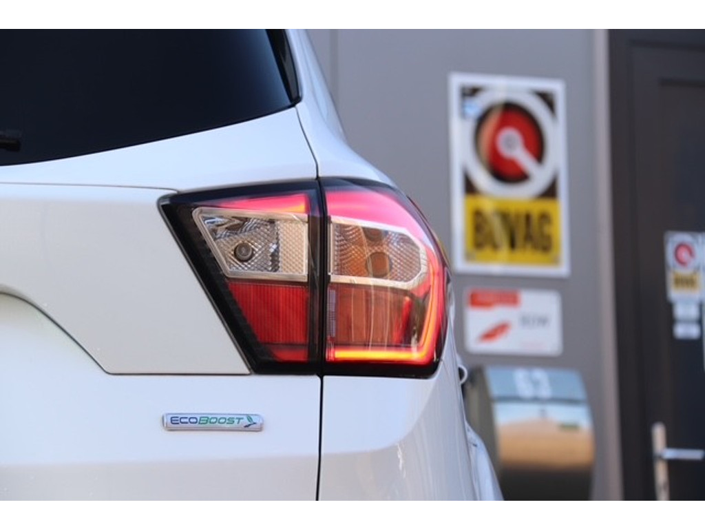 Het is niet alleen maar een stoer uiterlijk, deze Ford Kuga biedt ook de sportieve rijkwaliteiten die u zoekt. Met zijn benzinemotor en handgeschakelde zesversnellingsbak is dit een prima auto voor nog vele kilometers. De verwarmbare voorstoelen zijn een heerlijke extra optie, waarmee u uzelf en uw bijrijder een groot plezier doet. Mooi om te zien en heerlijk om in te zitten zijn de sportstoelen, die u onderweg optimale ondersteuning geven. Life is easy! In ieder geval met dit elektrisch bediende glazen panoramadak. Een praktische extra is de elektrisch bedienbare achterklep die opent en sluit met een druk op de knop. Bij de uitrusting van deze Ford horen onder meer 18 inch lichtmetalen velgen, sportonderstel, halflederen bekleding, LED-dagrijverlichting, in delen neerklapbare achterbank en verstelbare lendensteunen.