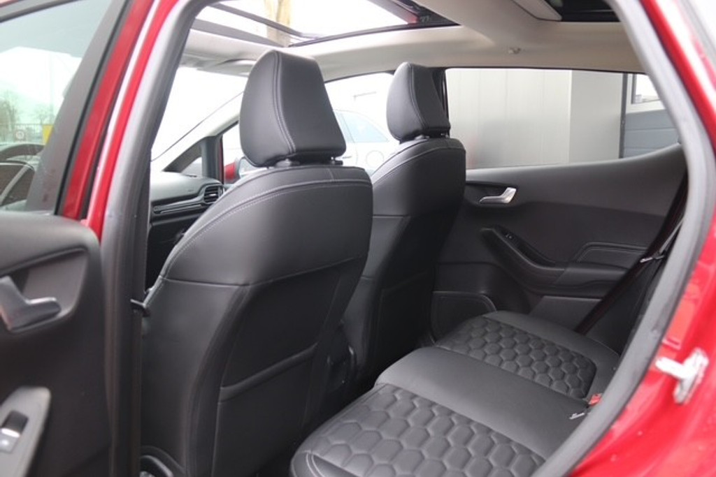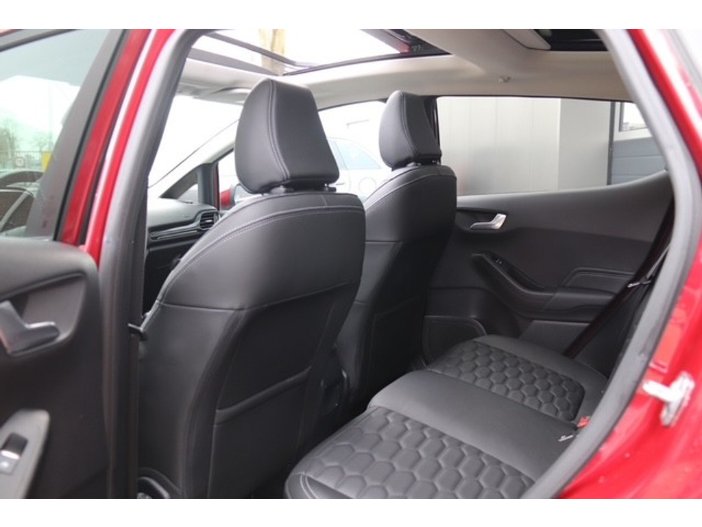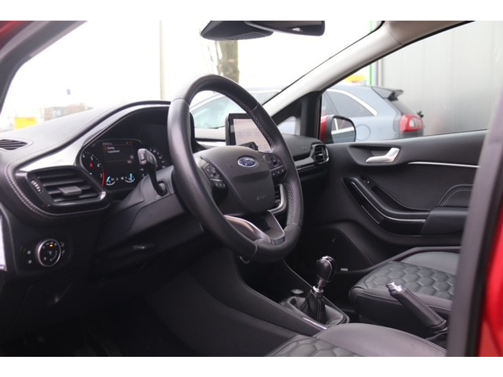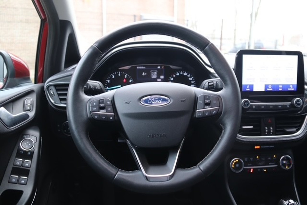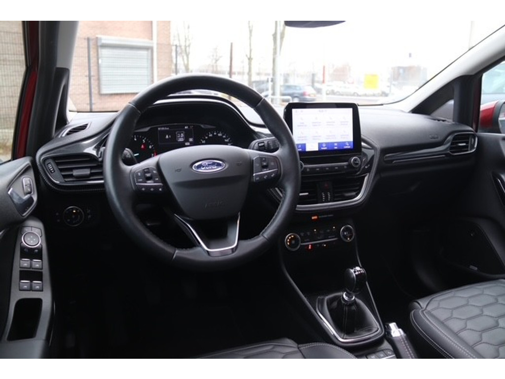 De nieuwste veiligheidssystemen komen in deze Ford Fiesta samen. Onderweg zorgt verkeersborddetectie ervoor dat u geen waarschuwingsbord mist. Het Lane-keeping systeem let constant op en waarschuwt of corrigeert als u onoplettend over de lijnen van de rijstrook gaat. Vermoeid achter het stuur zitten vergroot de kans op een ongeval. Vermoeidheidsherkenning waarschuwt tijdig als u aan een rustpauze toe bent. In deze Ford vinden we verder een dodehoekdetectie, hill hold functie, brake assist en bandenspanningcontrolesysteem.