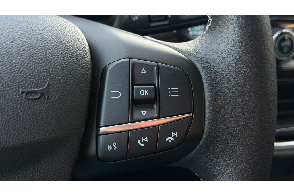 Vergeten af te sluiten? Bandenspanning onvoldoende? De speciale app geeft u direct een seintje met behulp van Connected Services. In deze auto klinkt uw favoriete muziek nog beter dankzij het high performance audiosysteem. Onderweg de accu van uw smartphone opladen gaat zonder snoeren en stekkers. U plaatst 'm simpel in de draadloze oplaadmogelijkheid voor telefoons en klaar! De kans op een kop-staart botsing wordt sterk gereduceerd door het systeem van achteropkomend verkeer waarschuwing. Of het buiten nu warm is of koud, dankzij automatische airconditioning is het binnen altijd behaaglijk. De Ford is standaard voorzien van: dashboard met spraakbediening, full map navigatiesysteem, WIFI-hotspot, DAB ontvangst, parkeersensoren achter en regensensor.