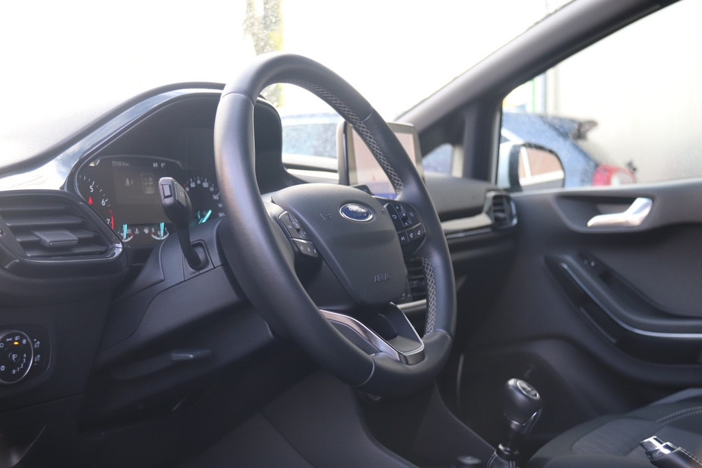 Go Ford, Go Further. En dat maakt deze auto helemaal waar. Met zijn benzinemotor en handgeschakelde zesversnellingsbak is dit een prima auto voor nog vele kilometers. De sportstoelen geven het interieur van deze Fiesta een super strakke en sportieve uitstraling. Bij de uitrusting van deze auto horen onder meer 17 inch lichtmetalen velgen, LED-dagrijverlichting, in delen neerklapbare achterbank, LED-achterlichten en verstelbare lendensteunen.