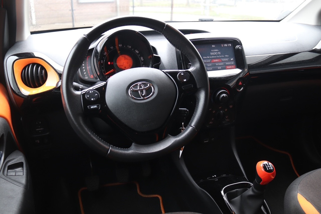 Achteruitrijden en inparkeren worden een eitje dankzij de achteruitrijcamera. Spraaksturing maakt het eenvoudiger en veiliger om deze auto onderweg te bedienen. Aan boord van deze Toyota Aygo is een achteropkomend verkeer waarschuwing voor extra veiligheid. De DAB-ontvanger zorgt voor een ruime keuze uit digitale radiozenders en een kristalheldere geluidsweergave. Allicht is er in deze auto ook airconditioning. De uitrusting van deze Toyota is met centrale deurvergrendeling met afstandsbediening en verstelbaar stuur behoorlijk compleet.