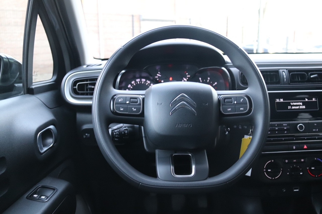 In deze C3 vindt u schakelaars op het stuur om het audiosysteem te bedienen. De sensoren van de achteropkomend verkeer waarschuwing registreren wat er gebeurt in de dode hoeken en achter u. U krijgt meteen een waarschuwing als u een achterligger over het hoofd ziet. Cruise control is aanwezig; prettig voor de lange einden. Het spreekt voor zich dat u in deze auto ook airconditioning aantreft. Deze Citroën is voorzien van centrale deurvergrendeling met afstandsbediening, boordcomputer en verstelbaar stuur.