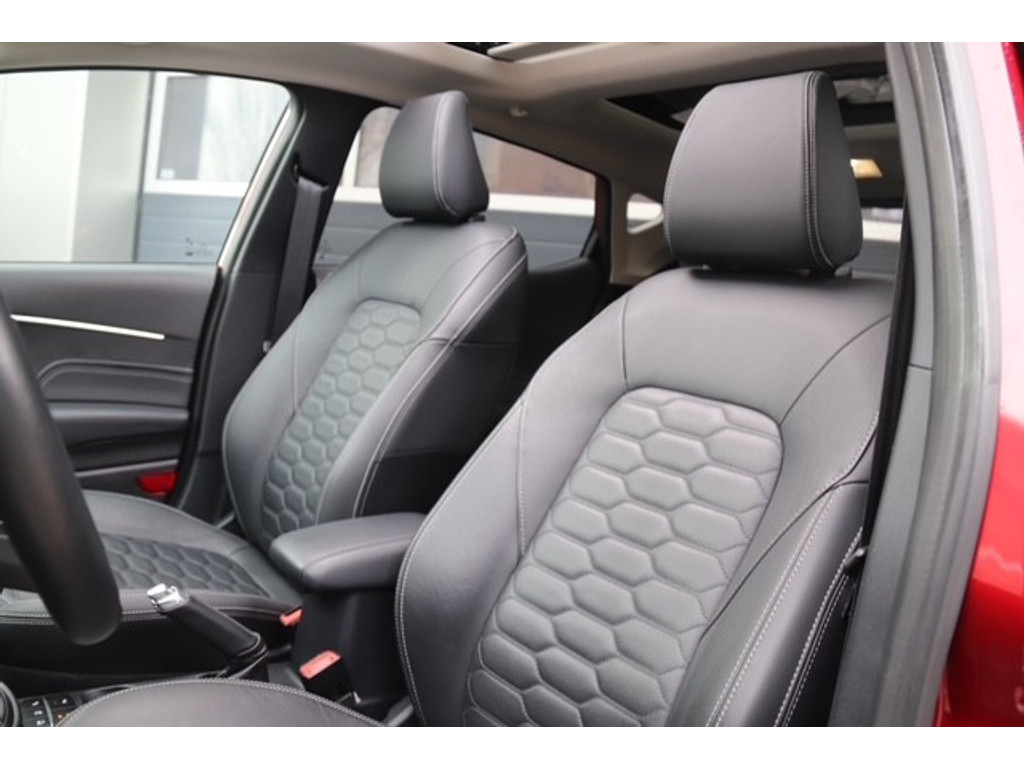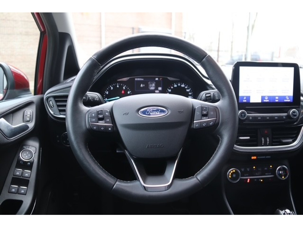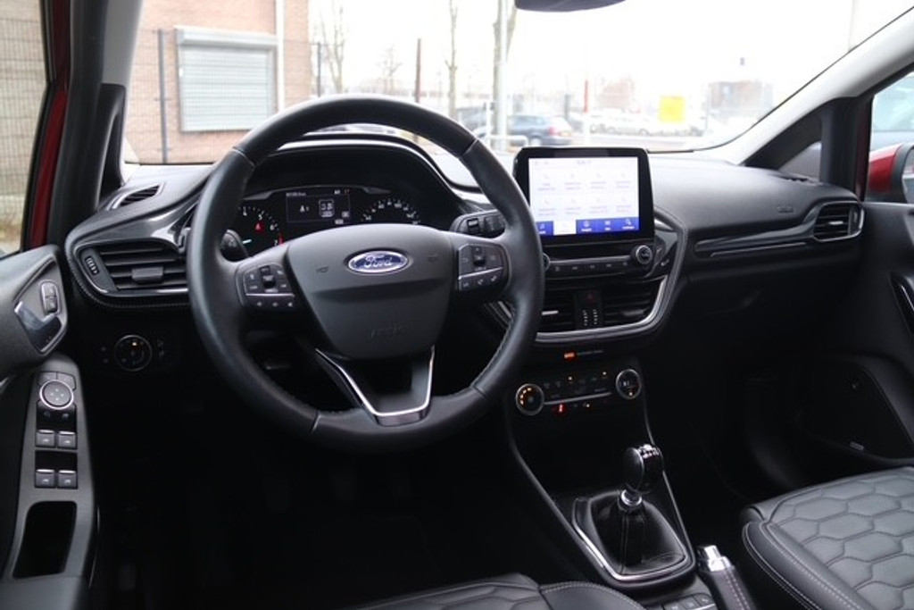 De nieuwste veiligheidssystemen komen in deze Ford Fiesta samen. Onderweg zorgt verkeersborddetectie ervoor dat u geen waarschuwingsbord mist. Het Lane-keeping systeem let constant op en waarschuwt of corrigeert als u onoplettend over de lijnen van de rijstrook gaat. Vermoeid achter het stuur zitten vergroot de kans op een ongeval. Vermoeidheidsherkenning waarschuwt tijdig als u aan een rustpauze toe bent. In deze Ford vinden we verder een dodehoekdetectie, hill hold functie, brake assist en bandenspanningcontrolesysteem.