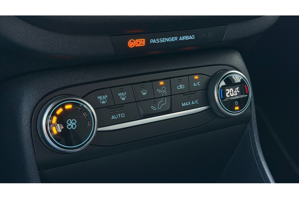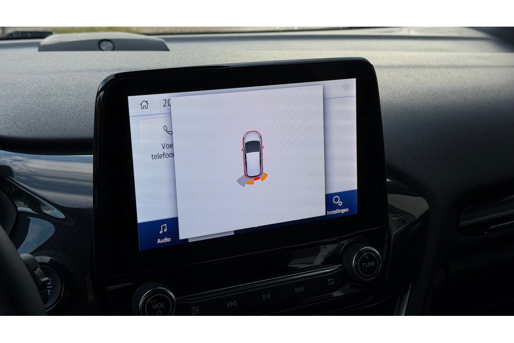 Vergeten af te sluiten? Bandenspanning onvoldoende? De speciale app geeft u direct een seintje met behulp van Connected Services. In deze auto klinkt uw favoriete muziek nog beter dankzij het high performance audiosysteem. Onderweg de accu van uw smartphone opladen gaat zonder snoeren en stekkers. U plaatst 'm simpel in de draadloze oplaadmogelijkheid voor telefoons en klaar! De kans op een kop-staart botsing wordt sterk gereduceerd door het systeem van achteropkomend verkeer waarschuwing. Of het buiten nu warm is of koud, dankzij automatische airconditioning is het binnen altijd behaaglijk. De Ford is standaard voorzien van: dashboard met spraakbediening, full map navigatiesysteem, WIFI-hotspot, DAB ontvangst, parkeersensoren achter en regensensor.