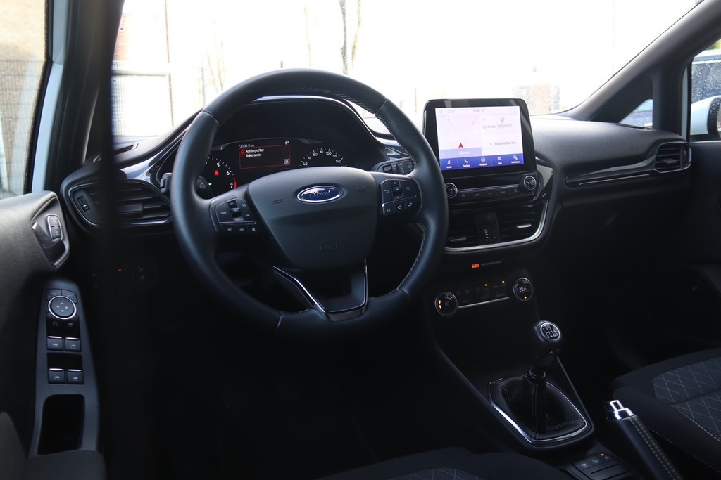 Go Ford, Go Further. En dat maakt deze auto helemaal waar. Met zijn benzinemotor en handgeschakelde zesversnellingsbak is dit een prima auto voor nog vele kilometers. De sportstoelen geven het interieur van deze Fiesta een super strakke en sportieve uitstraling. Bij de uitrusting van deze auto horen onder meer 17 inch lichtmetalen velgen, LED-dagrijverlichting, in delen neerklapbare achterbank, LED-achterlichten en verstelbare lendensteunen.