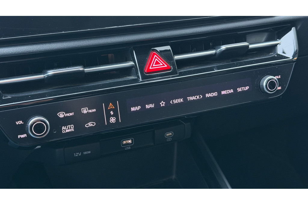 De intelligente veiligheidssystemen in deze auto waken continu over uw veiligheid. Belangrijk voor uw veiligheid en die van uw passagiers is de verkeersbord-detectie in deze auto. Deze Kia Niro is ook behulpzaam als het gaat om een rechte koers. Het Lane-keeping systeem signaleert en corrigeert als u onbedoeld de rijstrooklijnen dreigt te overschrijden. Forward collision warning waarschuwt bij een dreigende aanrijding met een voorligger. Met voorzieningen als hill hold functie, vermoeidheidsherkenning, autonoom remsysteem en bandenspanningcontrolesysteem, bent u altijd veilig onderweg.