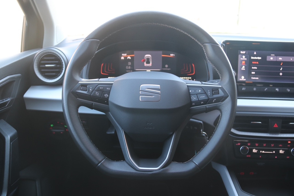 Communiceren met uw auto? Dat gaat via remote services. Met uw smartphone maakt u waar dan ook contact om allerlei functies te checken of te activeren. U luistert onderweg naar het glasheldere geluid van het audiosysteem met DAB-radio. Natuurlijk is er ook automatische airconditioning aanwezig. Boem is ho? Niet bij deze SEAT Arona. De piepjes van de parkeersensoren waarschuwen u op tijd voor obstakels. In deze SEAT kunt u zich concentreren op het verkeer, terwijl de auto de omgeving voor u in de gaten houdt. Een automatisch inschakelbare verlichting zorgt dat de verlichting aangaat als het donkerder wordt - in tunnels bijvoorbeeld - en de regensensor schakelt de ruitenwissers in als het nodig is. U hoeft er niets aan te doen. De uitrusting van deze auto is met cruise control, automatisch dimmende binnenspiegel, centrale deurvergrendeling met afstandsbediening en boordcomputer behoorlijk compleet.